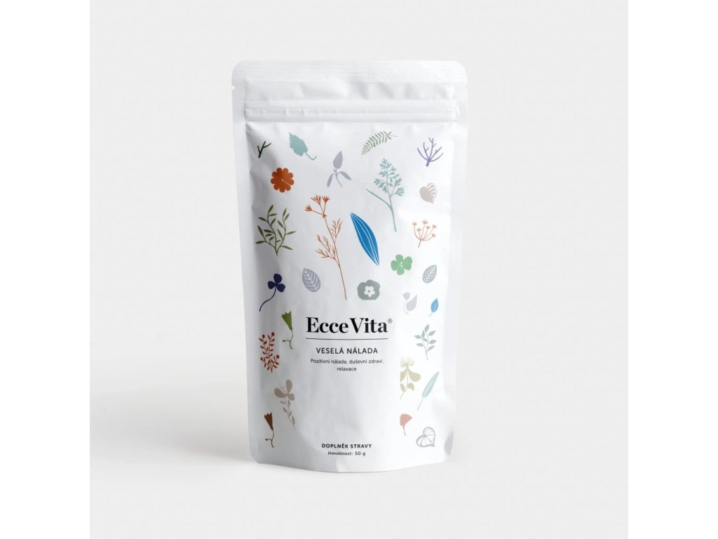 Směs 7 bylin pro podporu duševního zdraví a pozitivní nálady podle originální receptury Ecce Vita® obsahuje bylinky jako dobromysl, spořýš, "Damiána" a další.