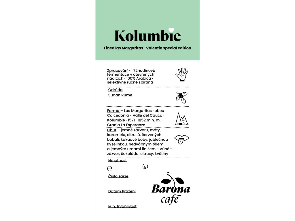 Tento mikrolot Sudan Rume z Granja La Esperanza z farmy Las Margaritas v Caicedonii v Valle del Cauca prochází selekcí zralých čerešení flotací, kontrolou cukrů a 72hodinovou přirozenou fermentací v otevřených nádržích, následovanou sušením v mechanických silách 8–12 dní při 38 °C a skladováním při 18–19 °C. Skvělé pražení vyniká ve filtru (Hario V60) jasným profilem zázvoru, mátové svěžesti, karamelu, čokolády a ovocné kyselinky.